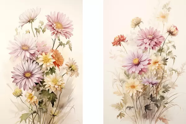 Poster Un bouquet di fiori colorati, stile acquerello morbido, su uno sfondo chiaro, illustrazione botanica d00649