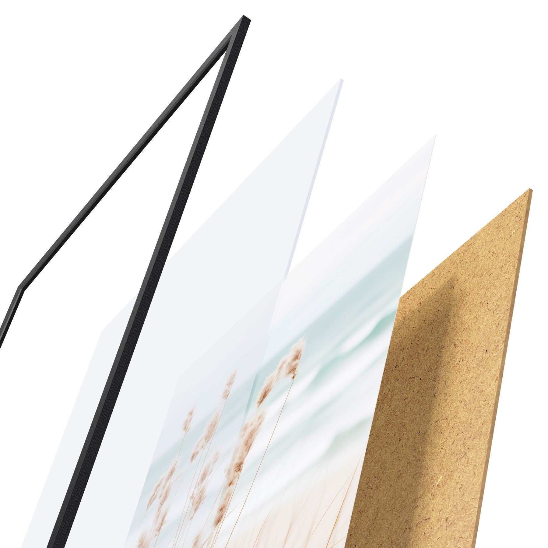 Il poster è composto da cornice, plexiglass, immagine stampata e supporto in truciolato. Il poster può essere immediatamente appeso alla parete grazie ai supporti sul retro.