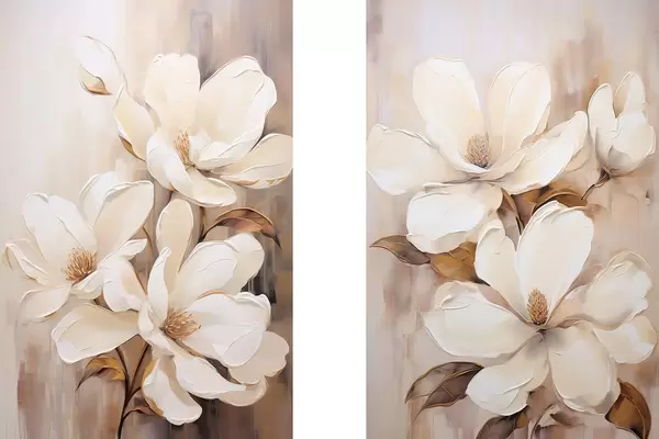 Poster Fiori di magnolia bianchi su uno sfondo morbido e sfocato di tonalità beige e marrone, stile pittura Nr d00655