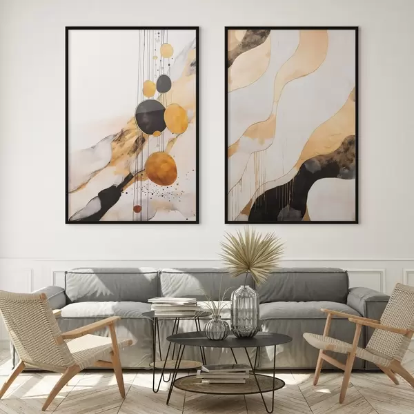 Poster Composizione astratta con cerchi neri e arancioni Nr d00684