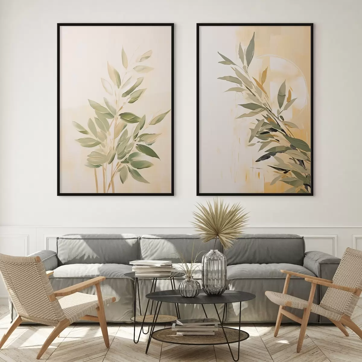 Poster Ramo botanico con foglie verdi su sfondo caldo Nr d00686