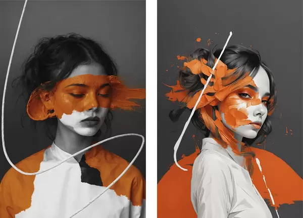 Poster Ritratti di ragazze con pennellate astratte di colore arancione Nr d00693