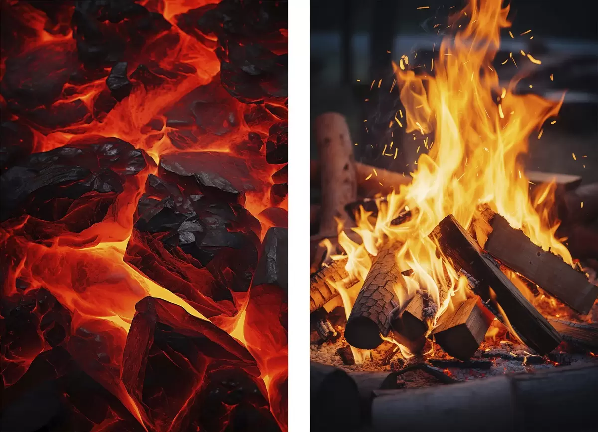 Poster Carboni ardenti e fuoco fiammeggiante nell'oscurità d00696