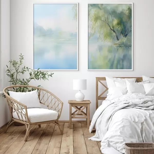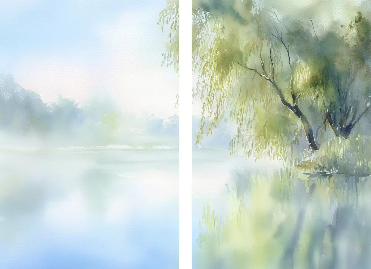 Poster salice sulla riva del lago in stile acquerello Nr d00702