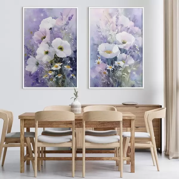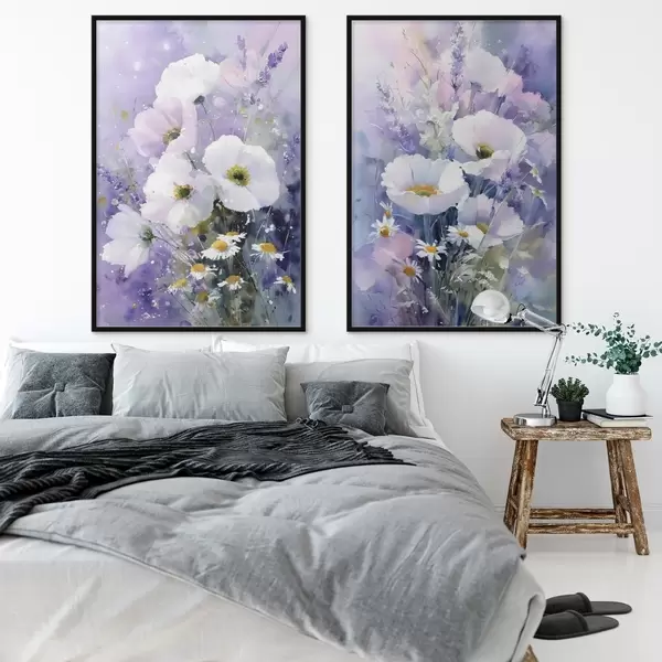 Poster bouquet acquerellato nei toni del lilla e del bianco Nr d00704