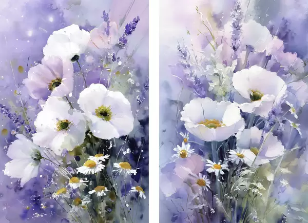 Poster bouquet acquerellato nei toni del lilla e del bianco Nr d00704