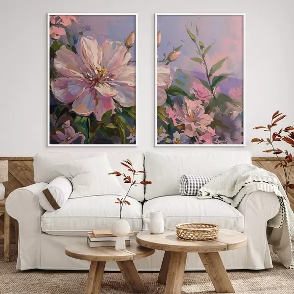 Poster fiori rosa in stile pittura a olio d00706