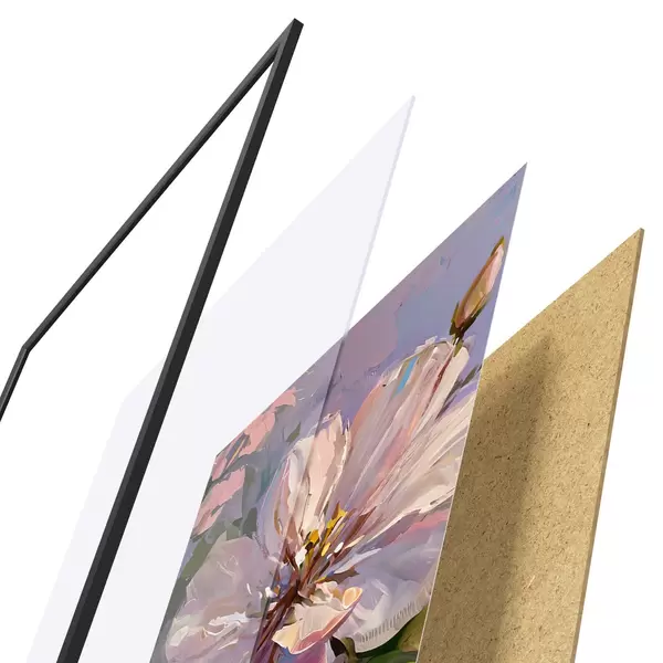 Il poster è composto da cornice, plexiglass, immagine stampata e supporto in truciolato. Il poster può essere immediatamente appeso alla parete grazie ai supporti sul retro.