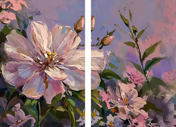 Poster fiori rosa in stile pittura a olio d00706