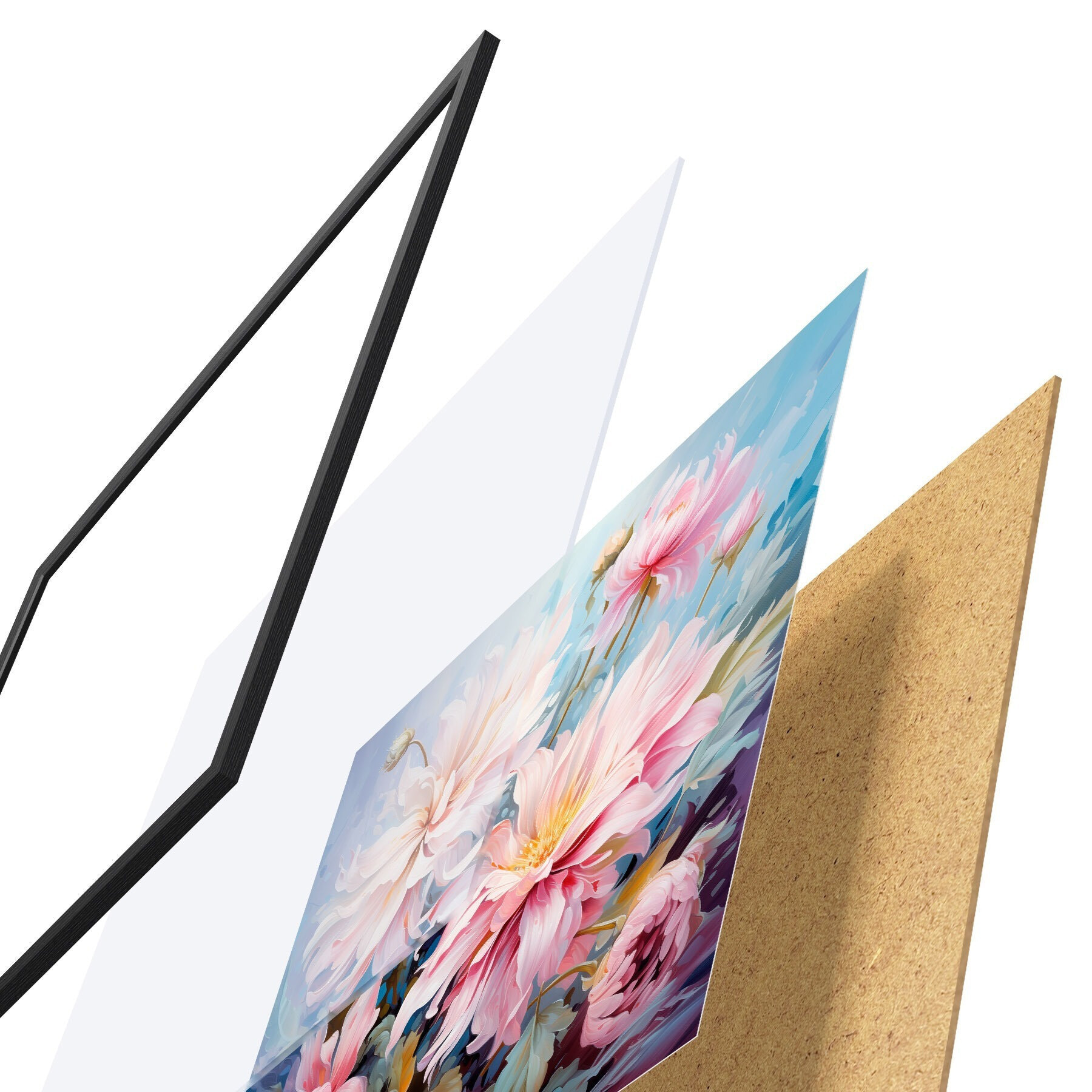 Il poster è composto da cornice, plexiglass, immagine stampata e supporto in truciolato. Il poster può essere immediatamente appeso alla parete grazie ai supporti sul retro.