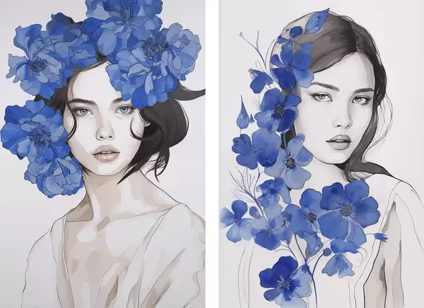 Poster Ritratto di ragazza con fiori blu d00721