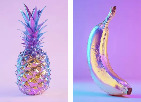Poster ananas e banana luminosi e lucidi in stile pop art Nr d00737