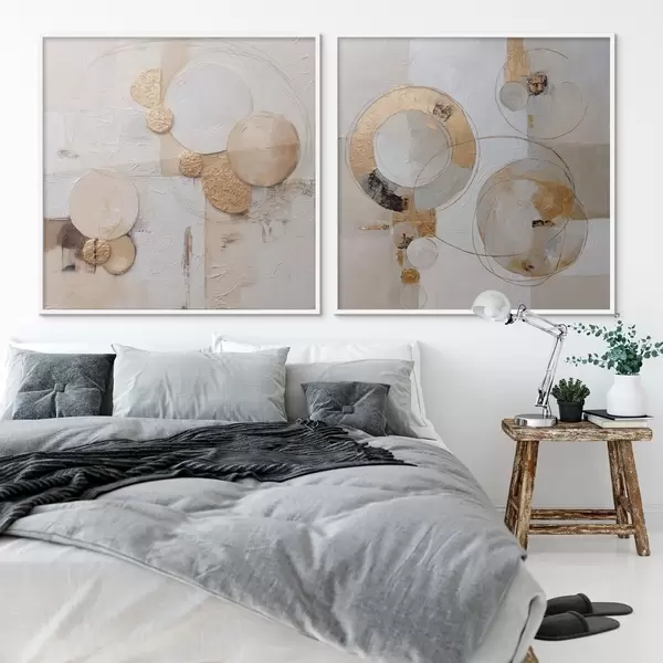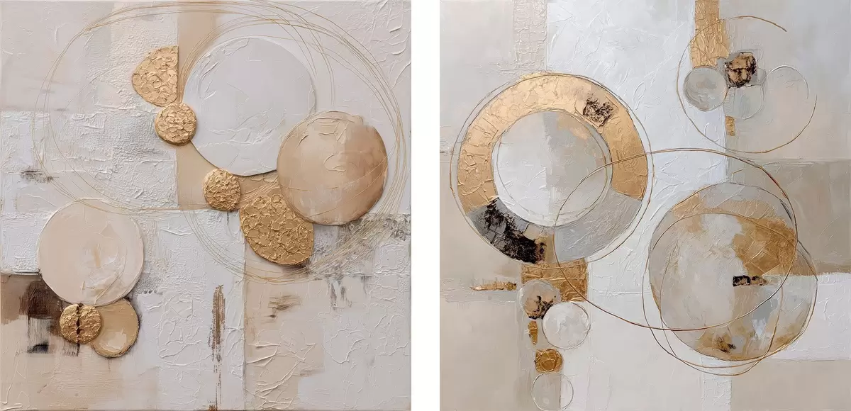 Poster Dipinto materico con forme beige e bianche Nr d00741