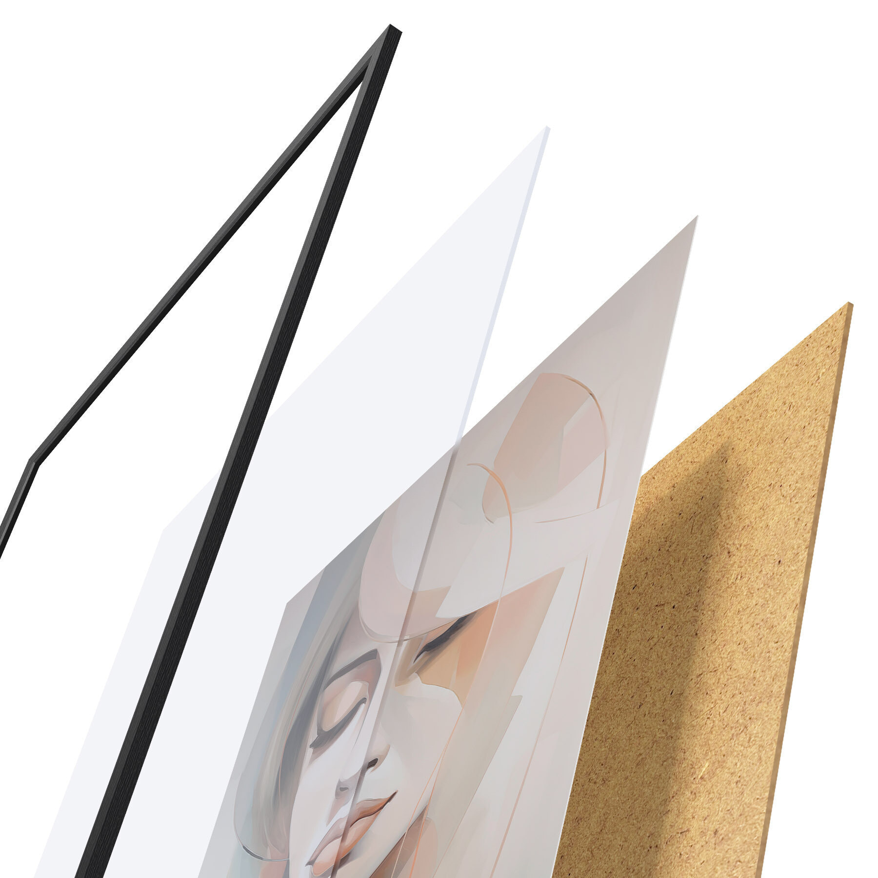 Il poster è composto da cornice, plexiglass, immagine stampata e supporto in truciolato. Il poster può essere immediatamente appeso alla parete grazie ai supporti sul retro.