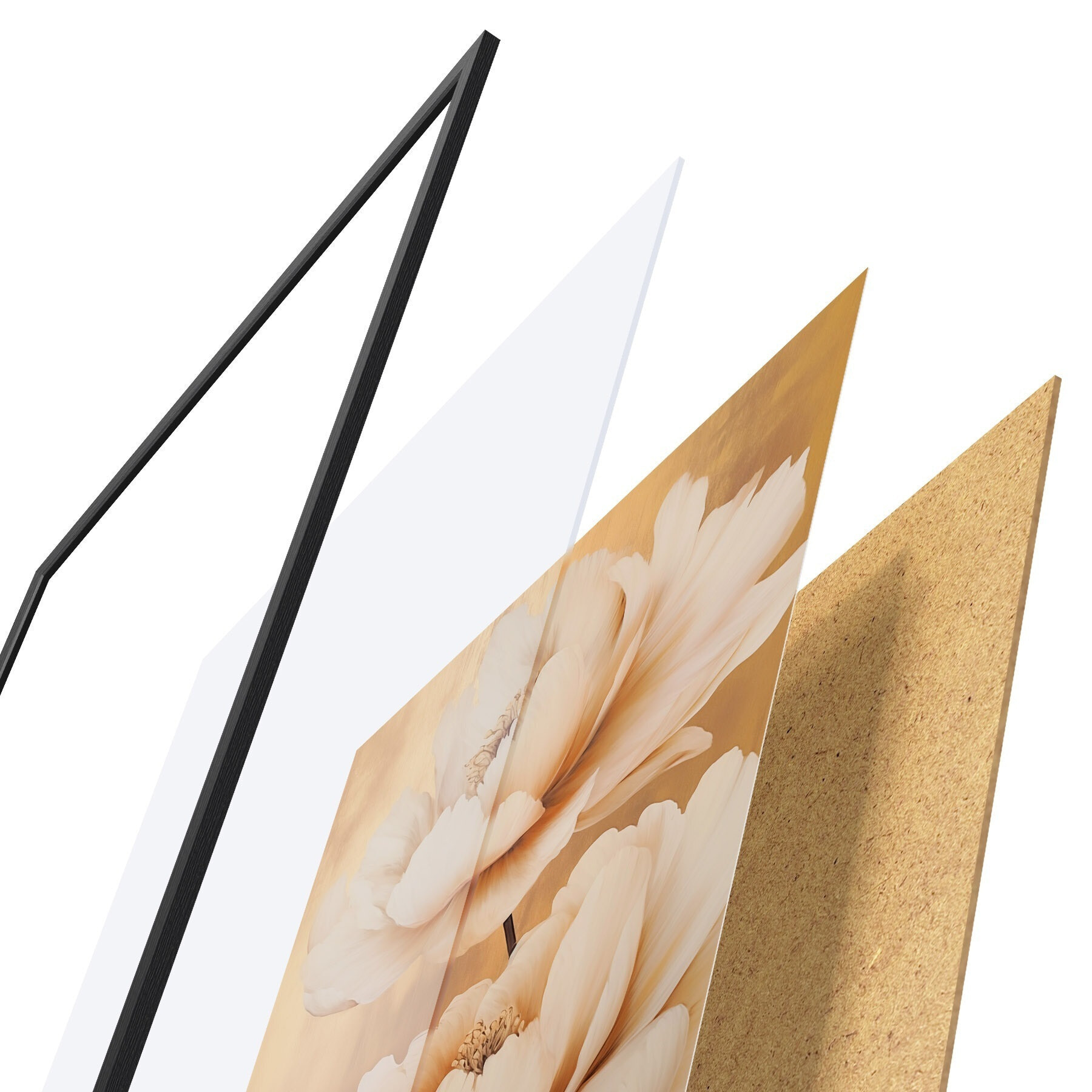 Il poster è composto da cornice, plexiglass, immagine stampata e supporto in truciolato. Il poster può essere immediatamente appeso alla parete grazie ai supporti sul retro.