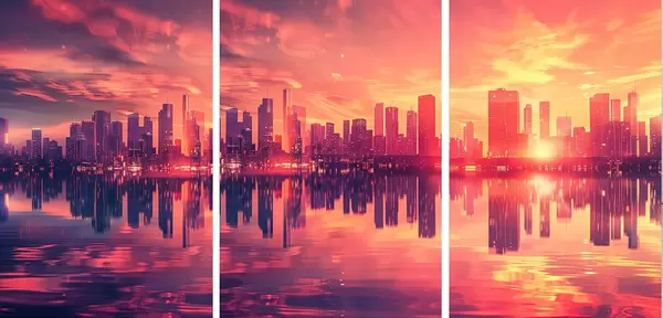 Poster Romantico tramonto con una città moderna sullo sfondo Nr d00784