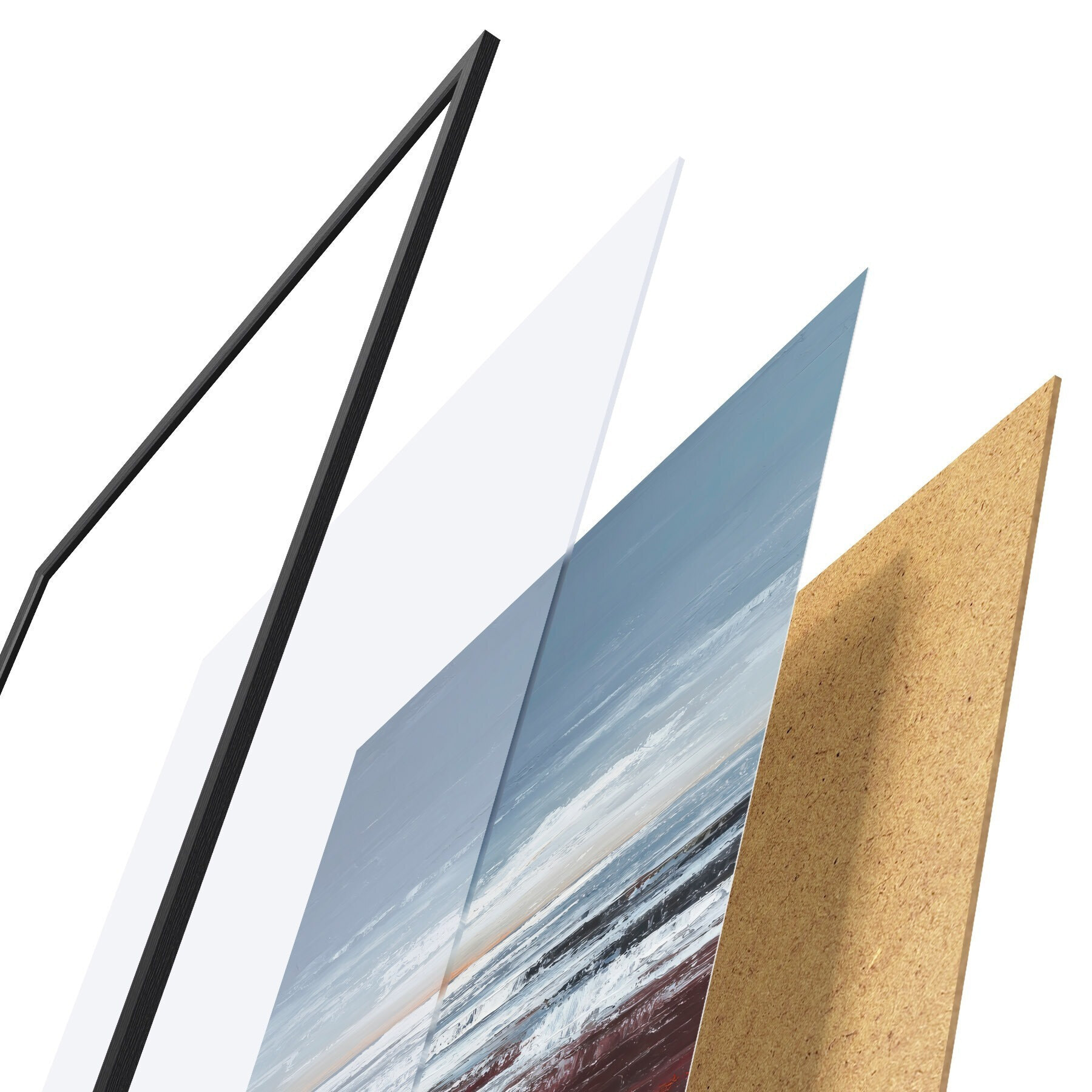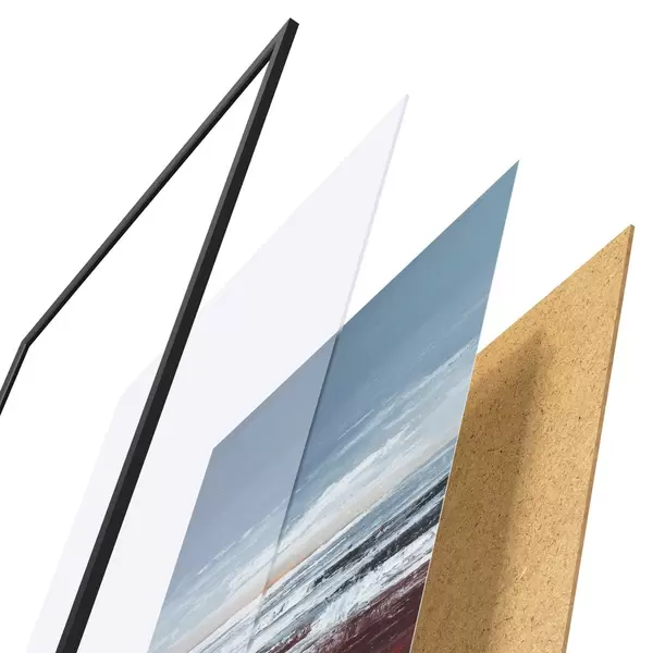 Il poster è composto da cornice, plexiglass, immagine stampata e supporto in truciolato. Il poster può essere immediatamente appeso alla parete grazie ai supporti sul retro.