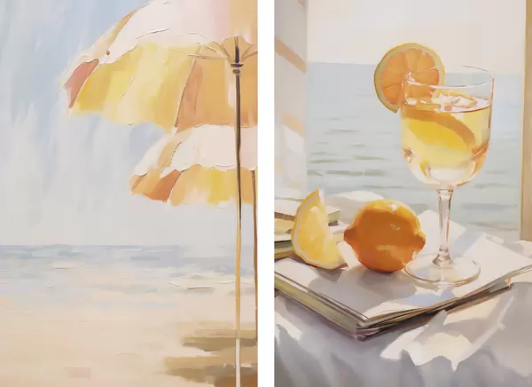 Poster Paesaggio marino e cocktail in un bicchiere Nr d00793