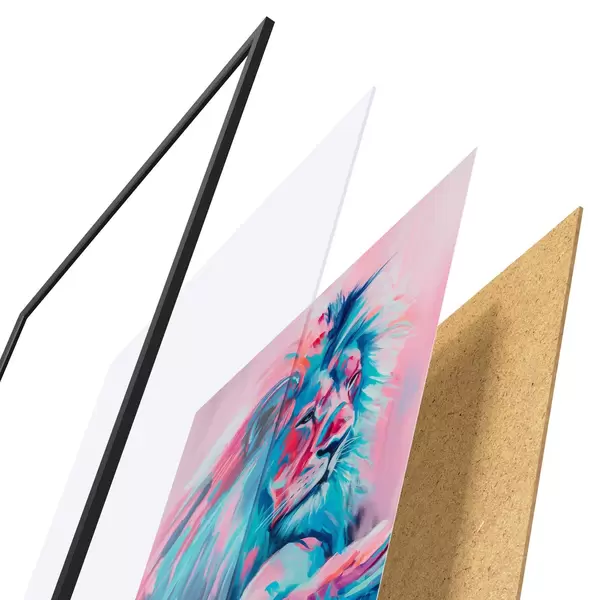 Il poster è composto da cornice, plexiglass, immagine stampata e supporto in truciolato. Il poster può essere immediatamente appeso alla parete grazie ai supporti sul retro.