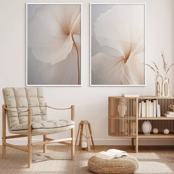 Poster Fiori astratti con petali sottili e delicati nei toni del bianco e del beige d00817