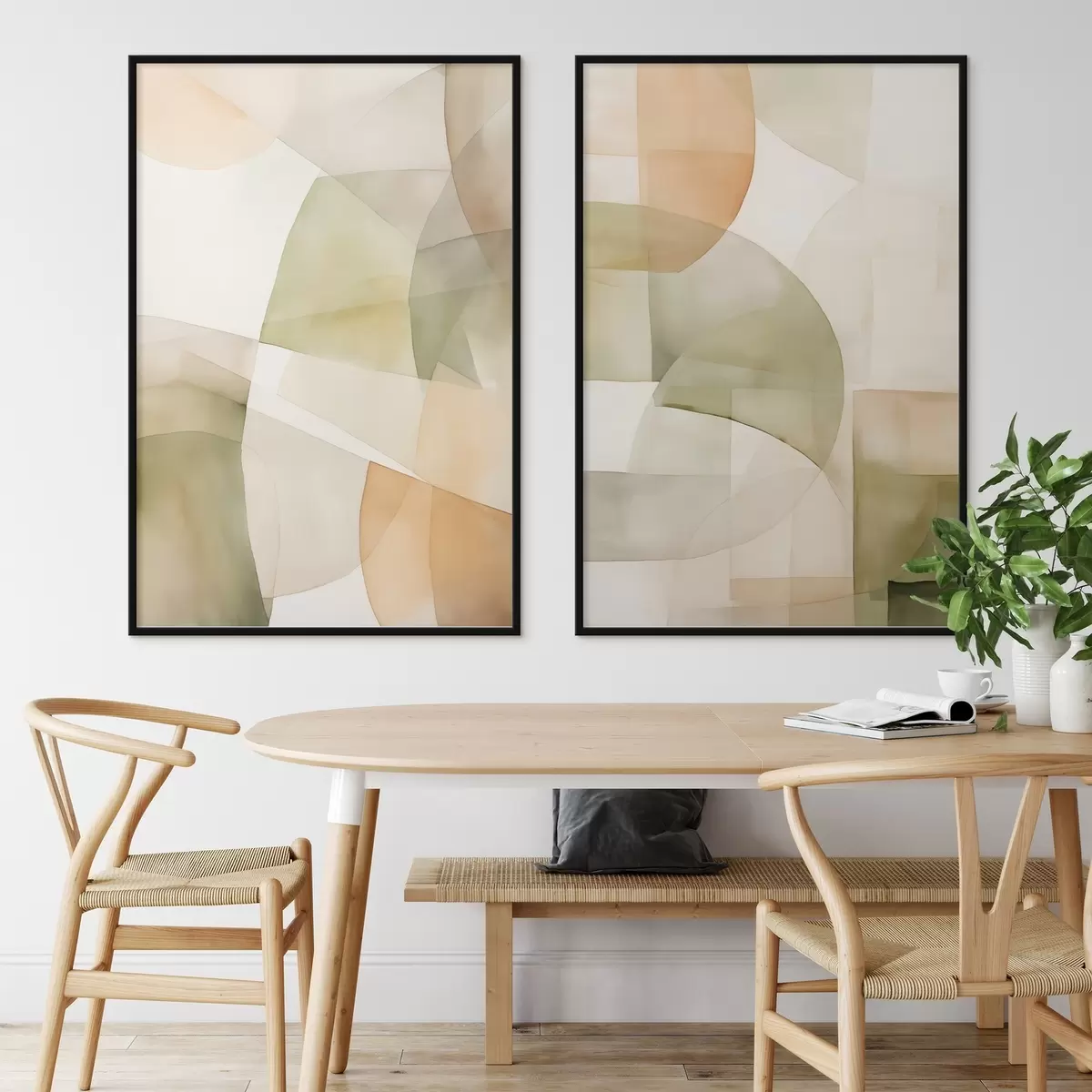 Poster Forme geometriche astratte con texture acquerellata nei toni del verde, marrone e beige Nr d00820