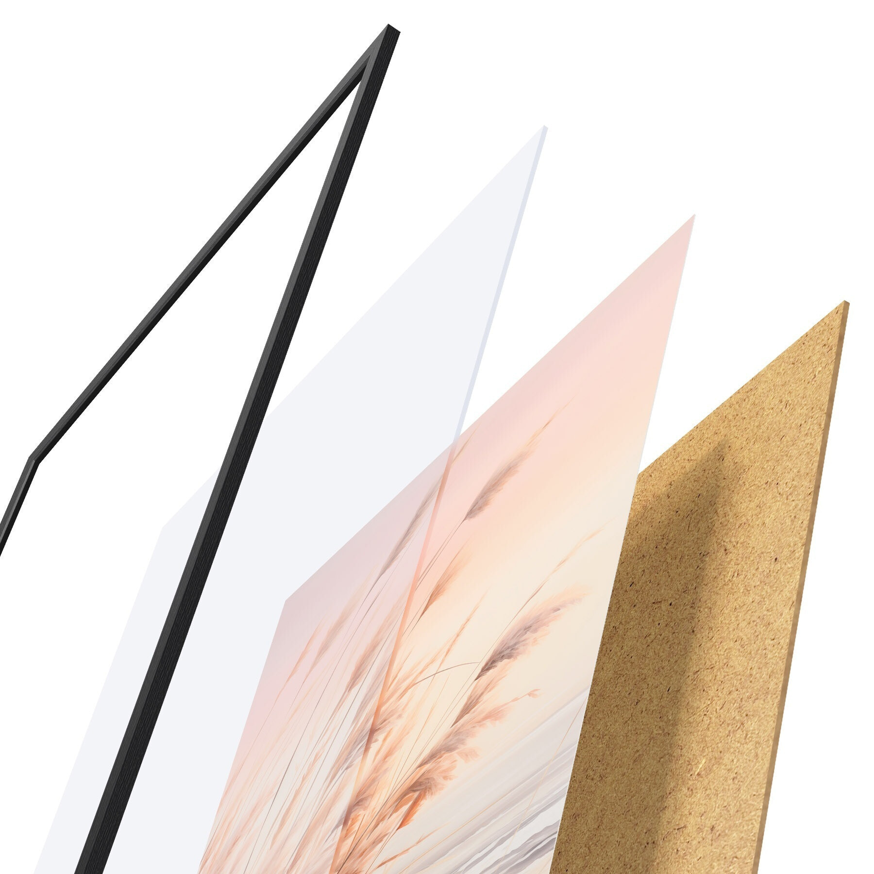 Il poster è composto da cornice, plexiglass, immagine stampata e supporto in truciolato. Il poster può essere immediatamente appeso alla parete grazie ai supporti sul retro.