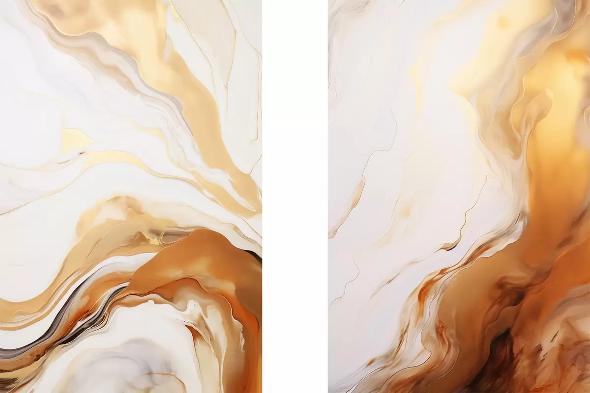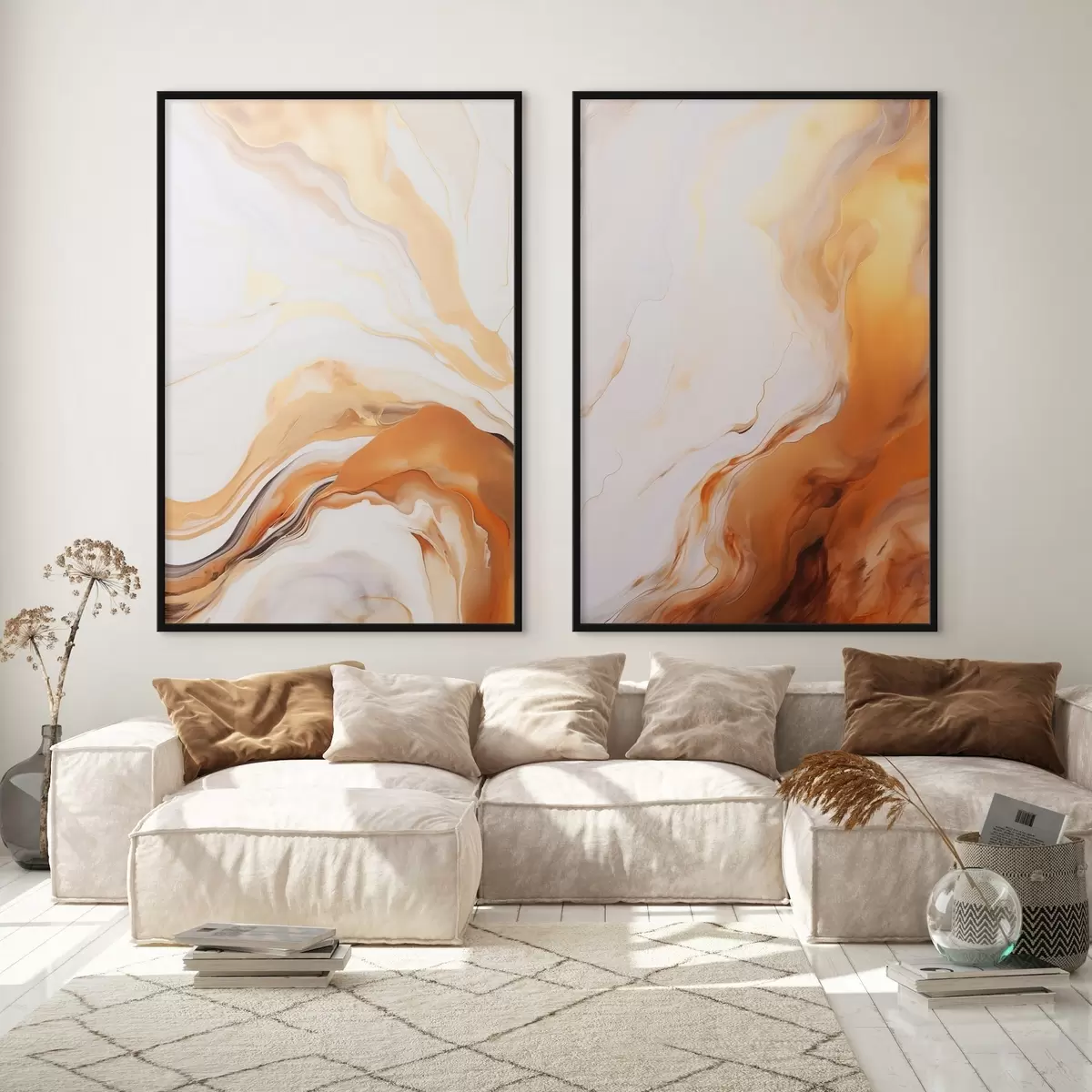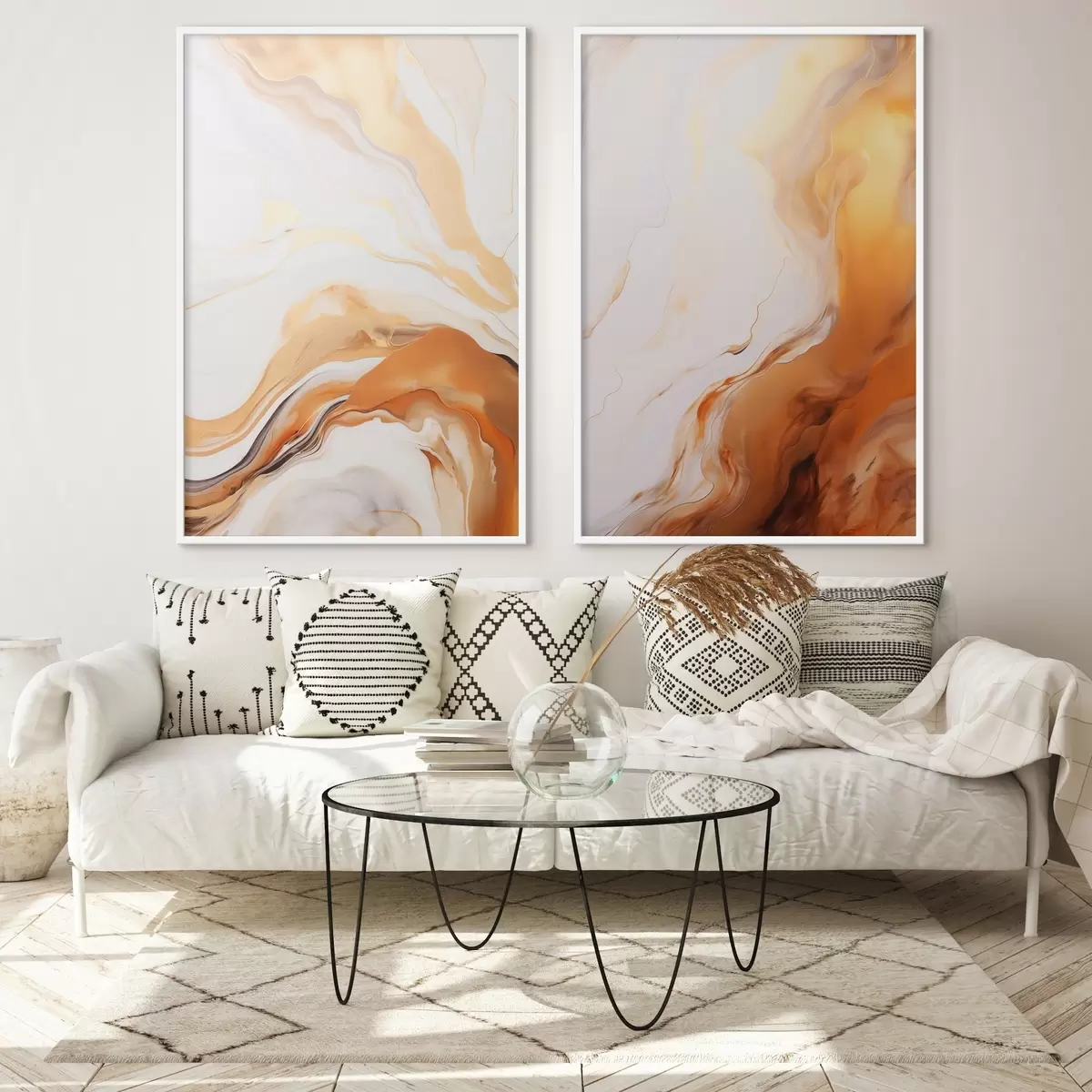 Poster Imitazione di pittura astratta con colori bianco e arancione, arte fluida con linee ondulate, arte moderna Nr d00825