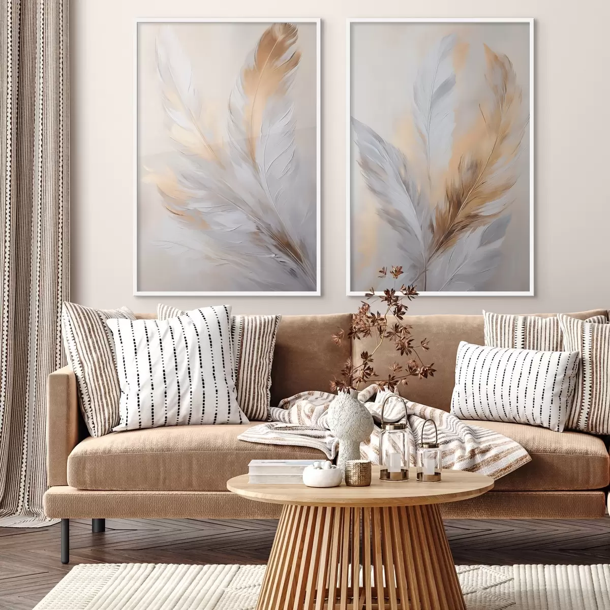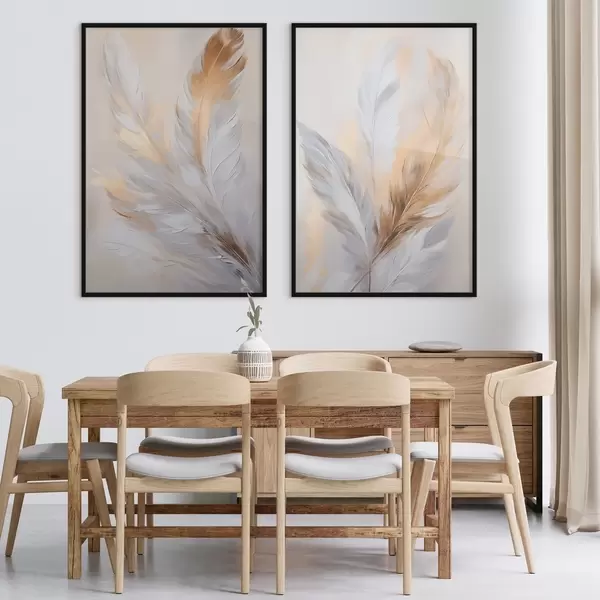 Poster Piume con accenti arancioni, composizione minimalista strutturata, arte moderna Nr d00828