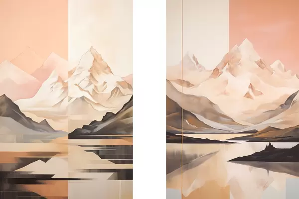 Poster Paesaggio astratto con montagne e un lago, colori pastello, stile minimalista Nr d00830