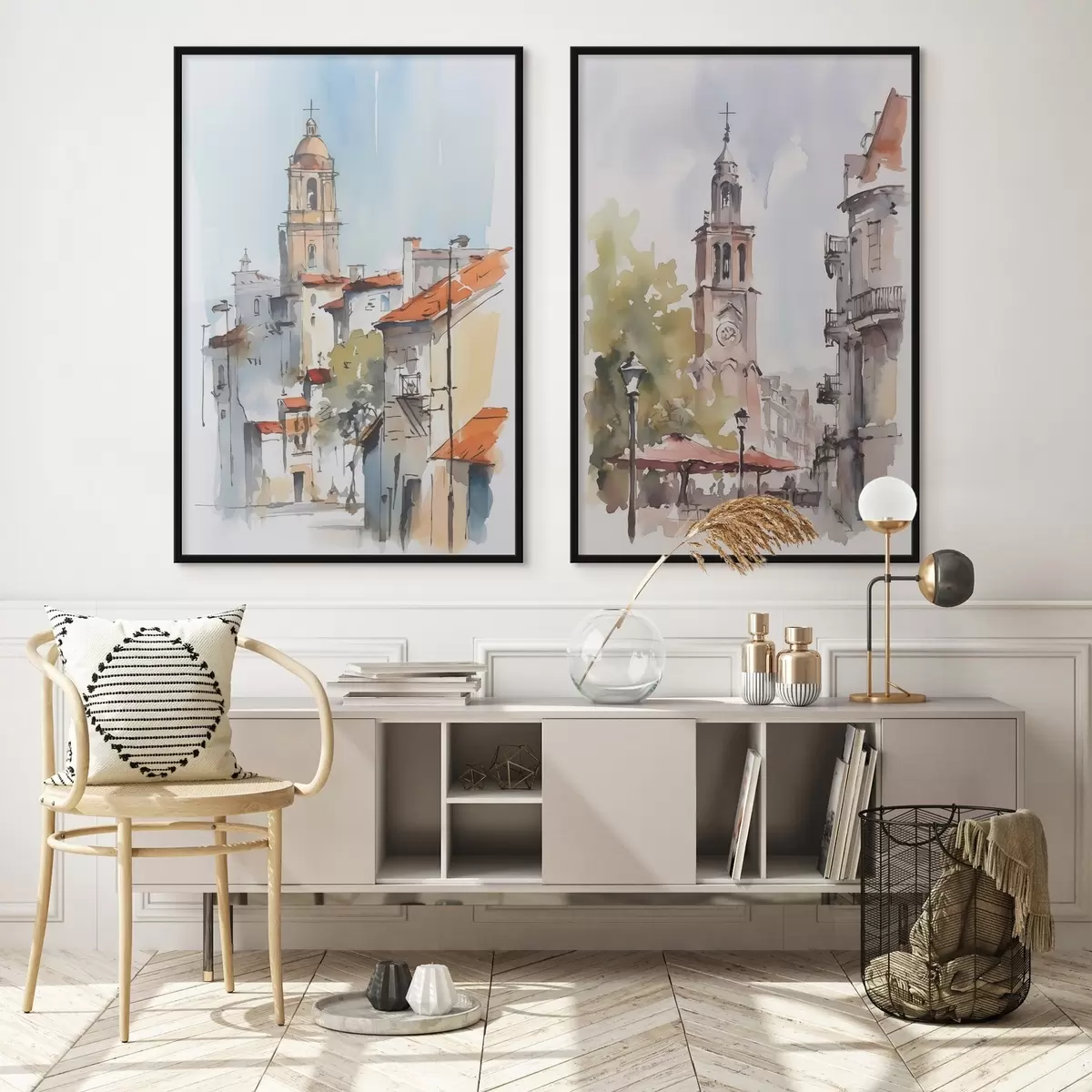 Poster Acquerello che imita il paesaggio urbano Nr d00832
