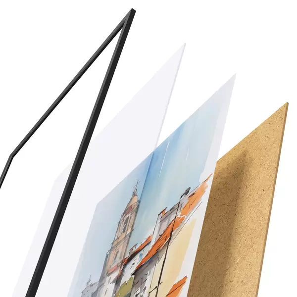Il poster è composto da cornice, plexiglass, immagine stampata e supporto in truciolato. Il poster può essere immediatamente appeso alla parete grazie ai supporti sul retro.