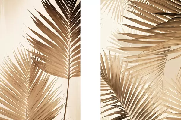 Poster Foglie di palma nei toni del marrone, sfondo neutro, stile minimalista, illuminazione naturale, atmosfera tropicale d00880