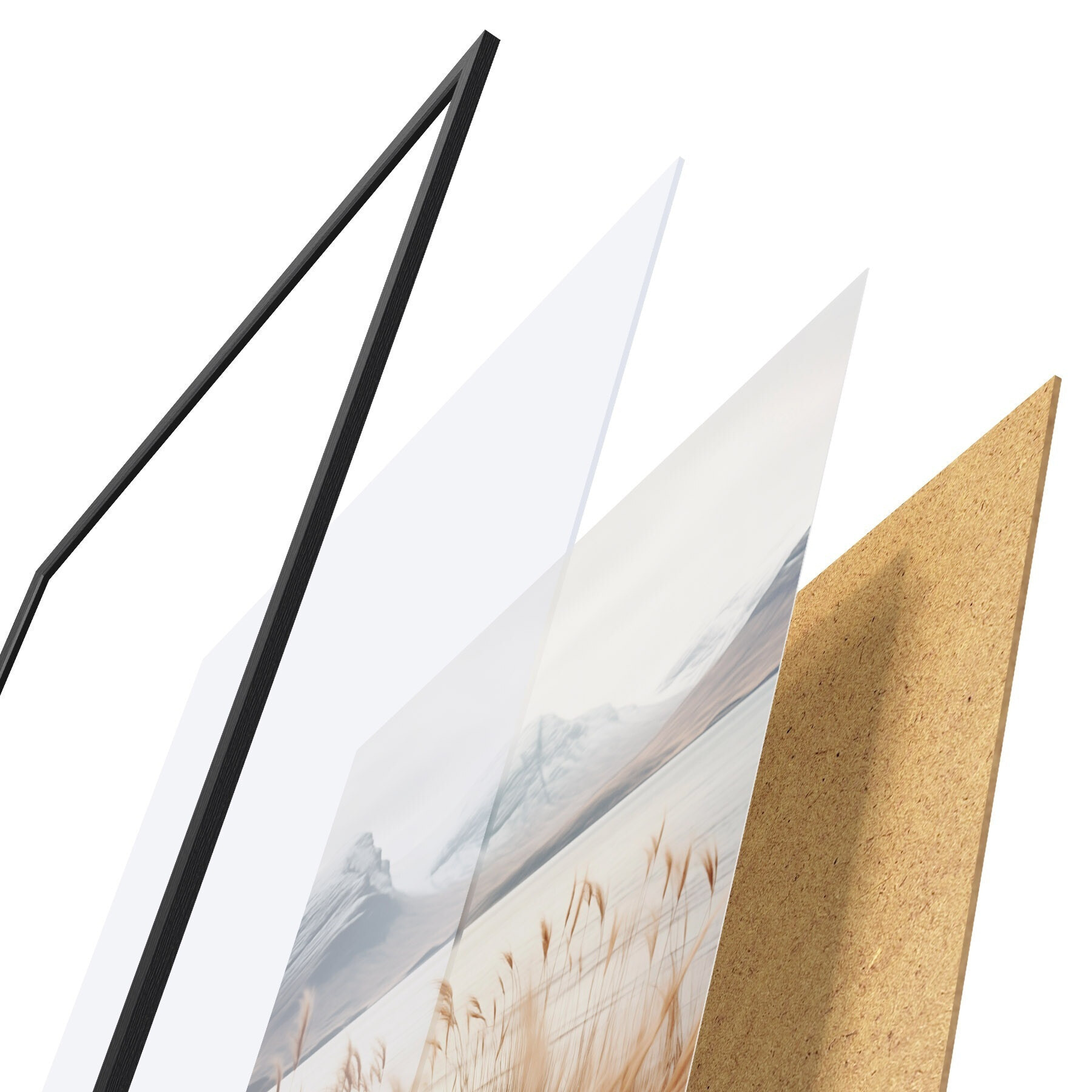 Il poster è composto da cornice, plexiglass, immagine stampata e supporto in truciolato. Il poster può essere immediatamente appeso alla parete grazie ai supporti sul retro.