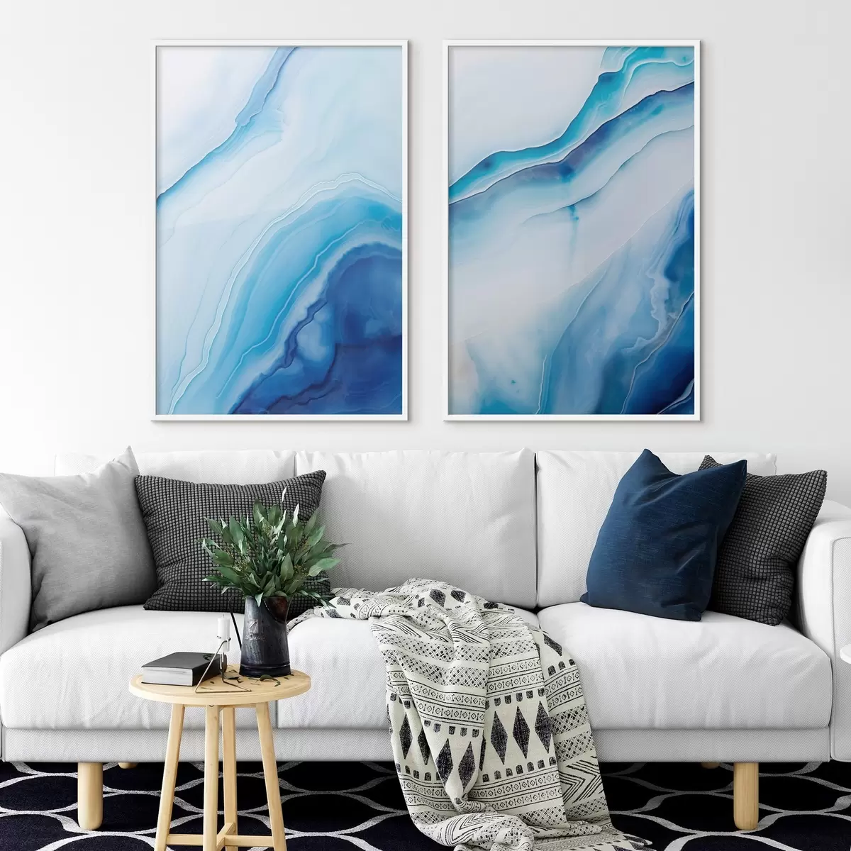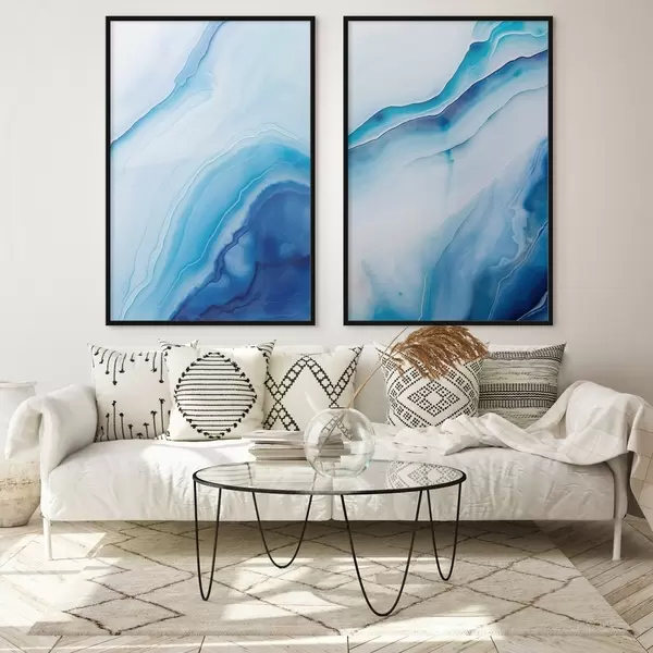 Poster Stampa astratta blu e bianco agata, linee e sfumature vorticose, texture liscia, arte moderna, minimalista Nr d00888