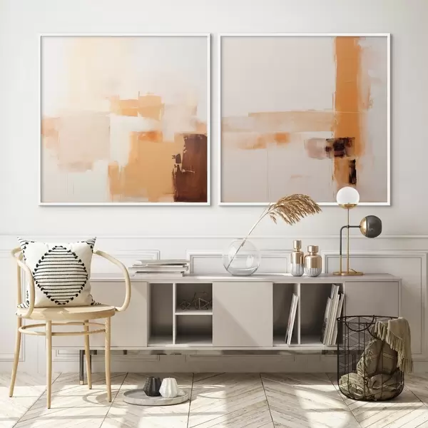 Poster Composizione astratta in due parti nei colori beige e marrone Nr d00891