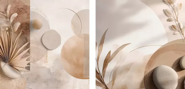 Poster Due tele con foglie secche e forme materiche d00893