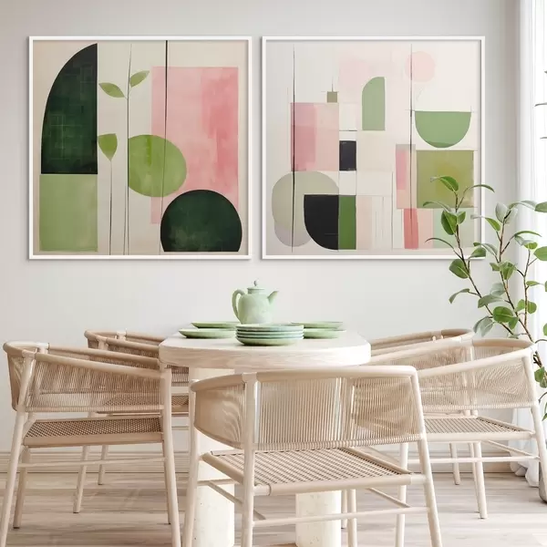 Poster Dittico minimalista con flora stilizzata e geometria Nr d00894