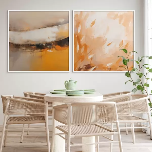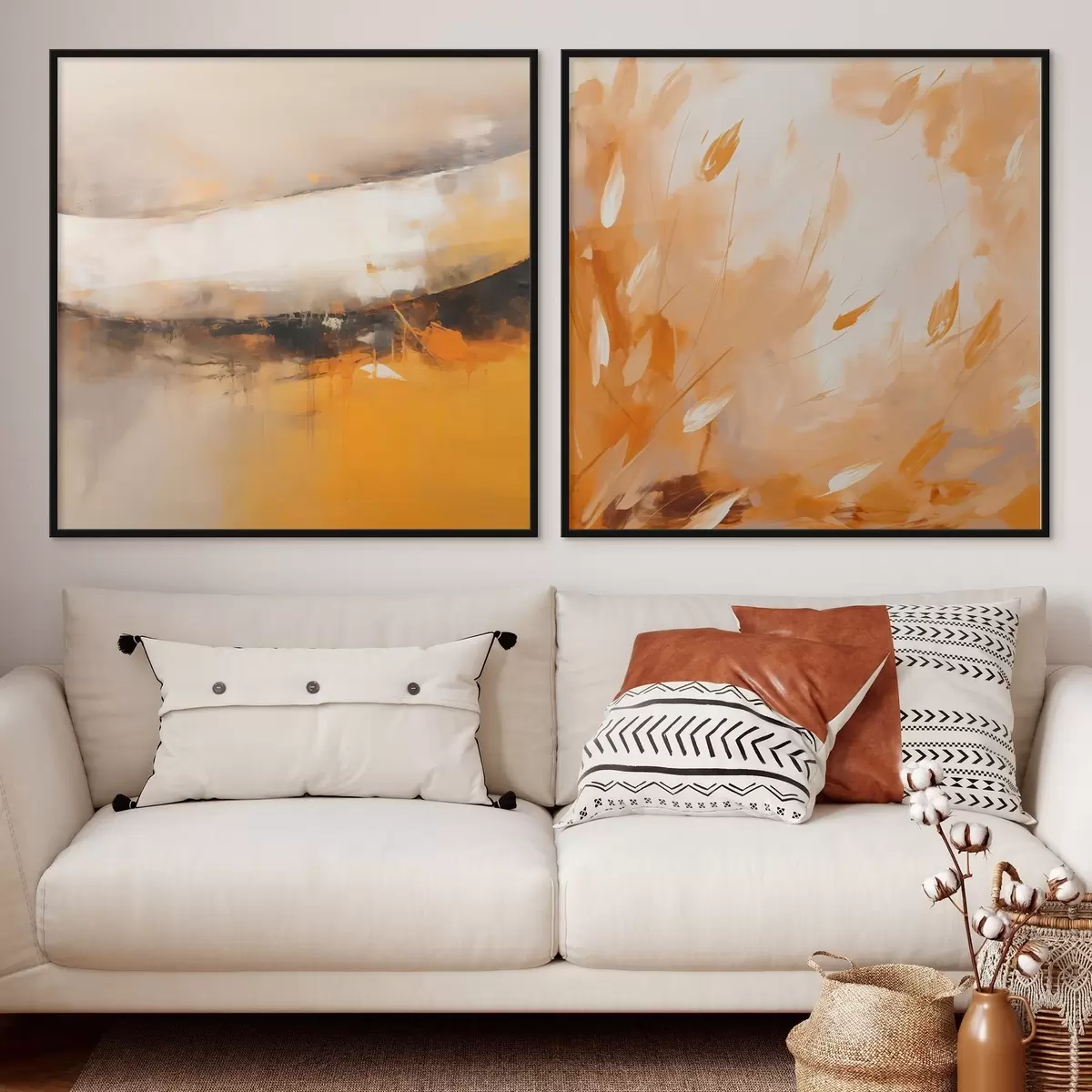 Poster Dittico astratto in stile oleoso con tonalità giallo-arancio e nero Nr d00897