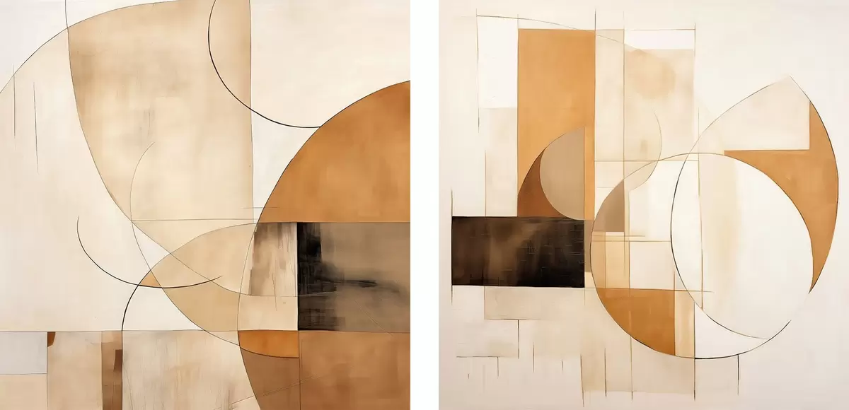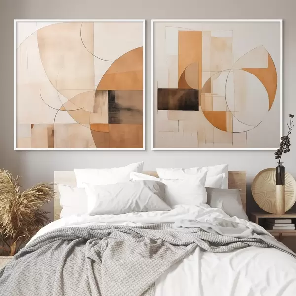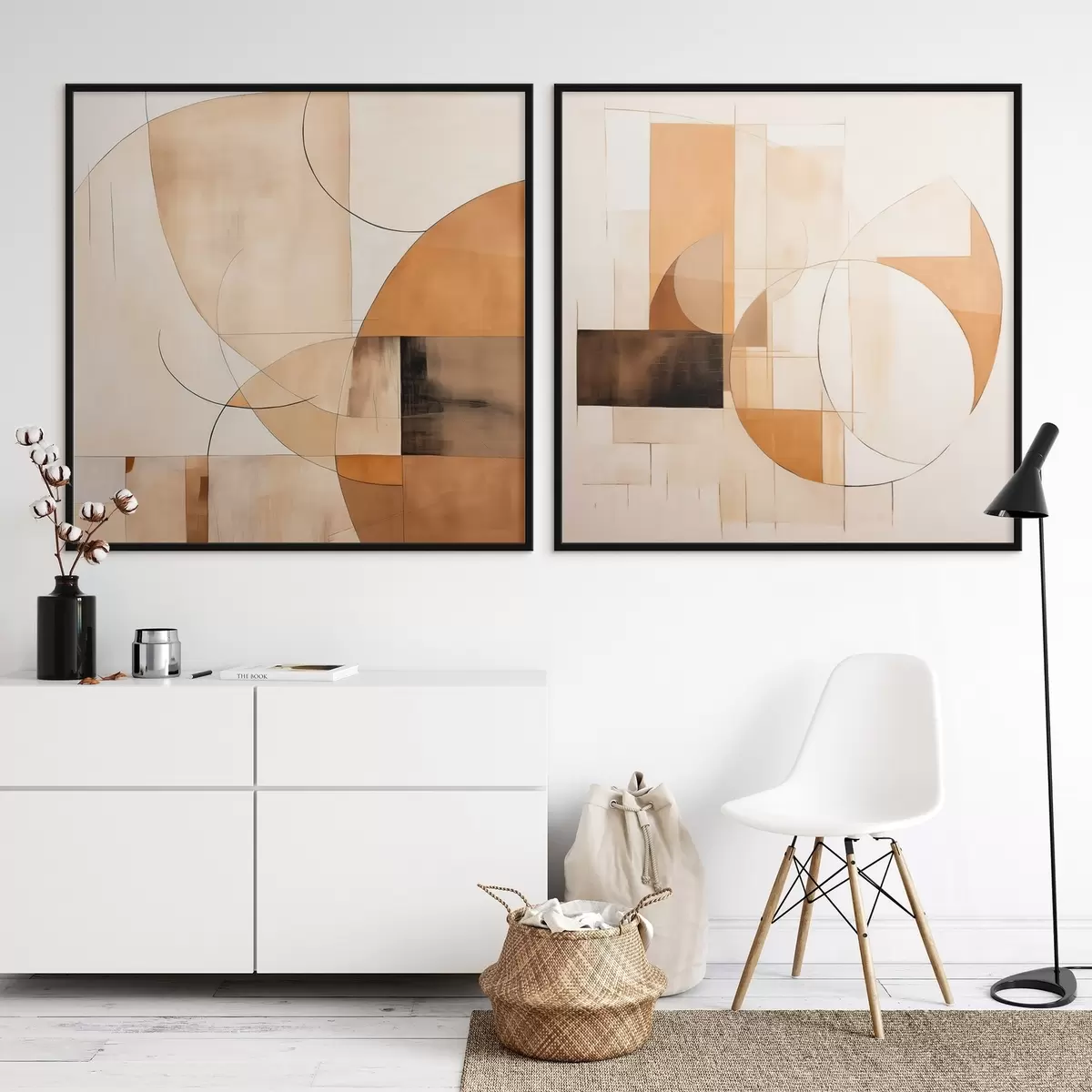 Poster Astrazione moderna con cerchi e linee nei colori del caffè con latte Nr d00898