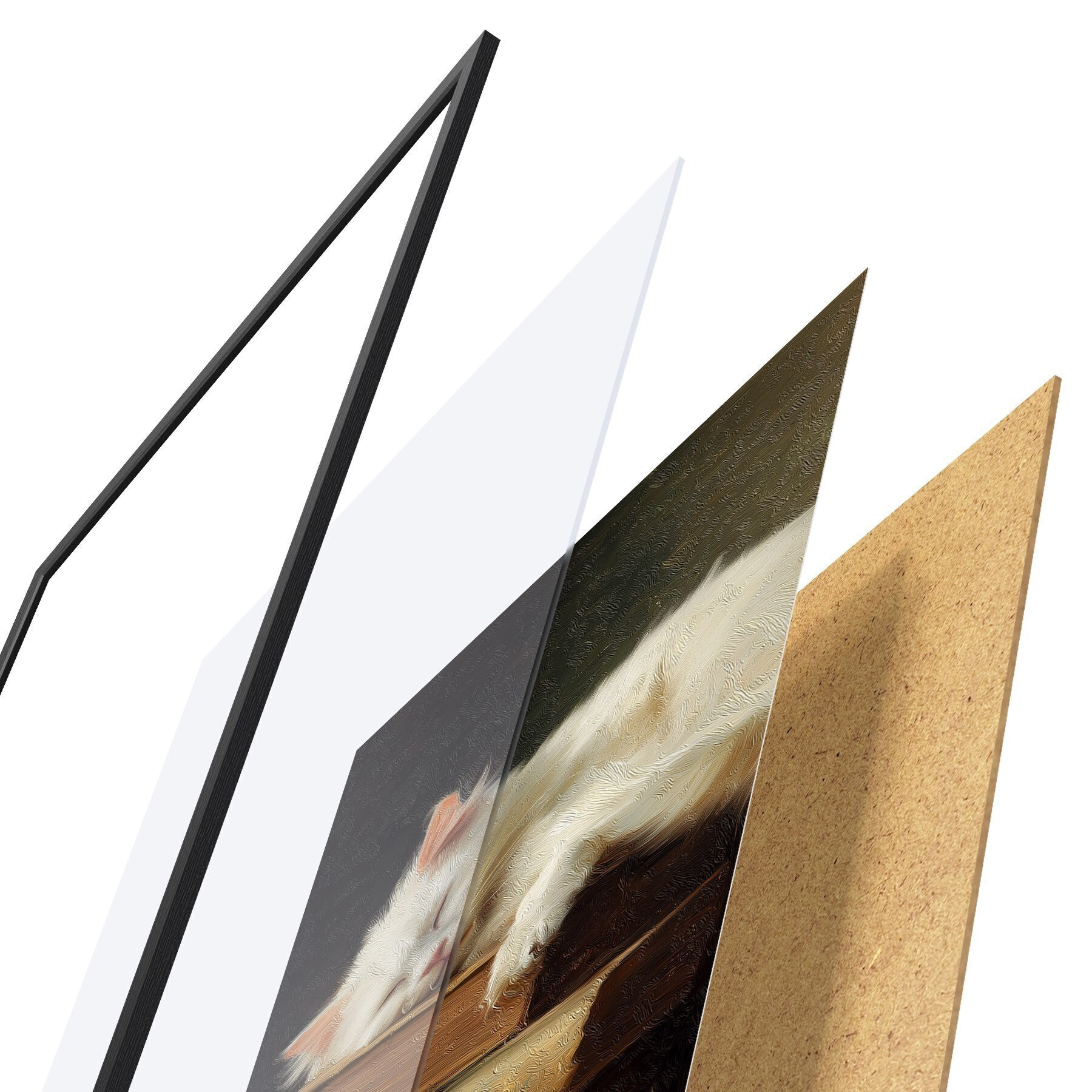 Il poster è composto da cornice, plexiglass, immagine stampata e supporto in truciolato. Il poster può essere immediatamente appeso alla parete grazie ai supporti sul retro.