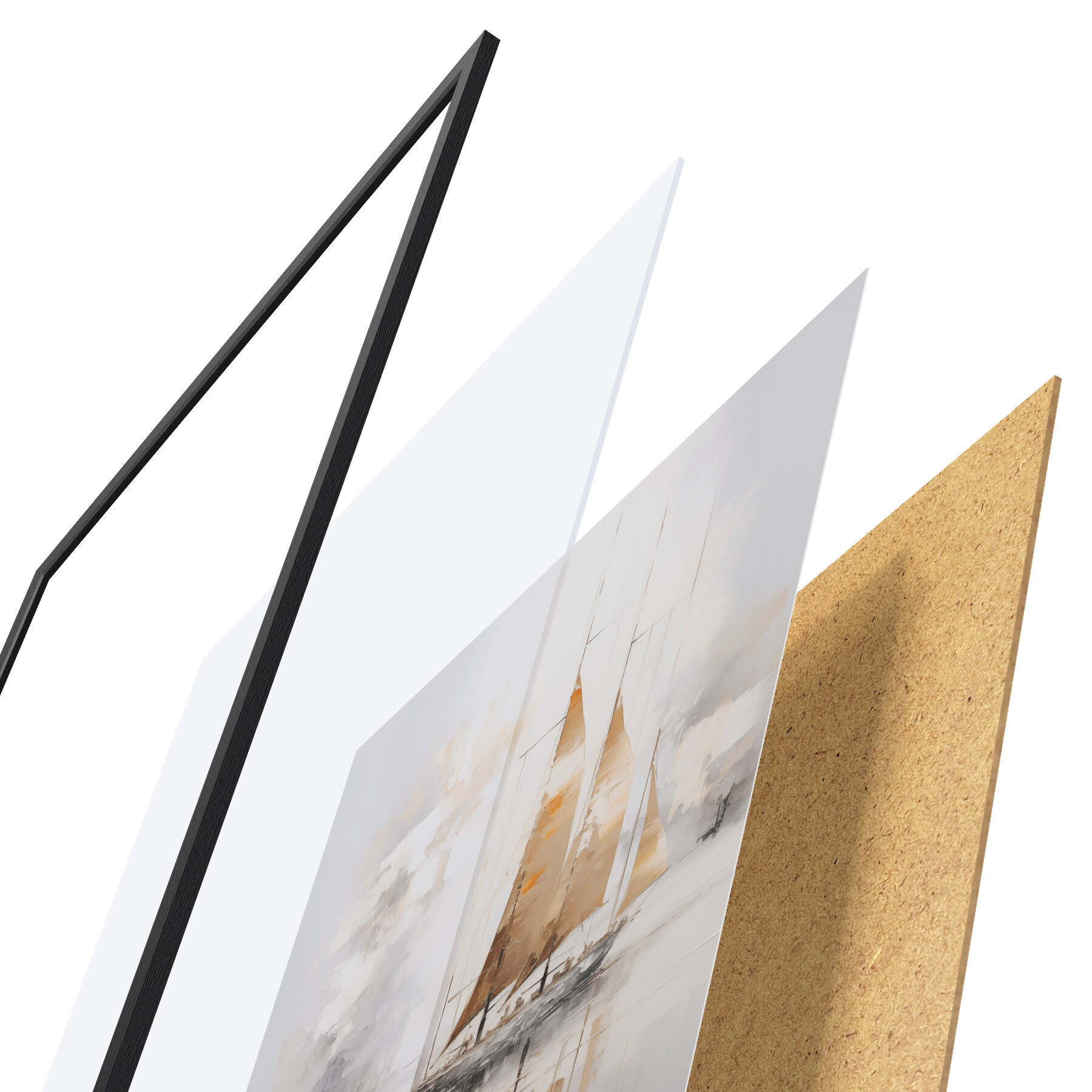 Il poster è composto da cornice, plexiglass, immagine stampata e supporto in truciolato. Il poster può essere immediatamente appeso alla parete grazie ai supporti sul retro.