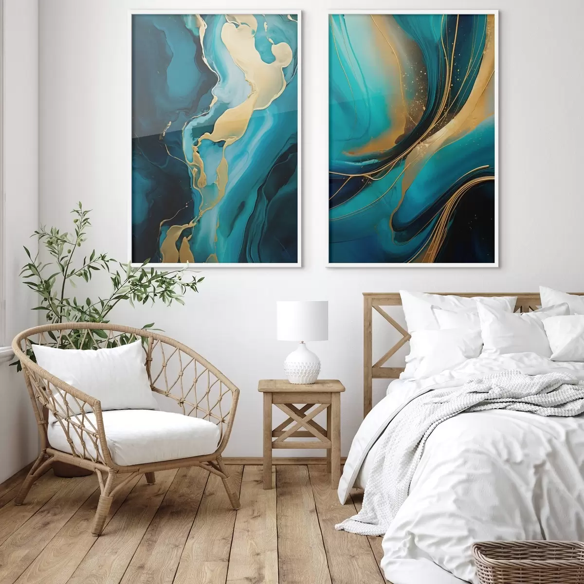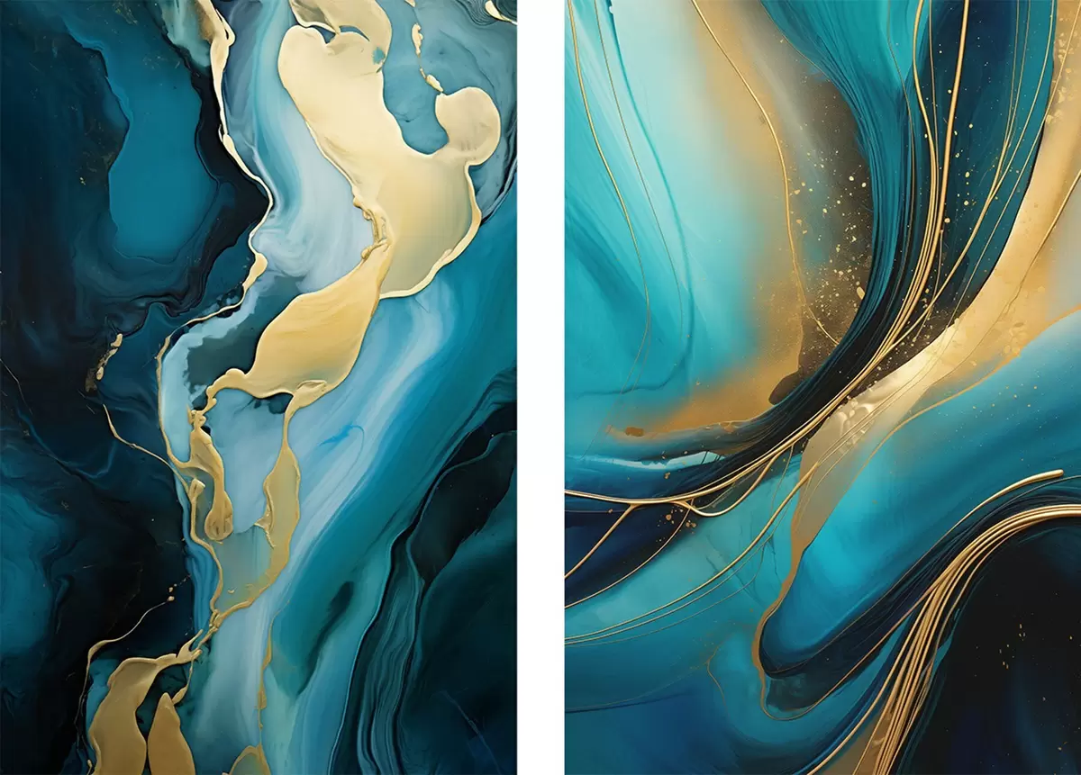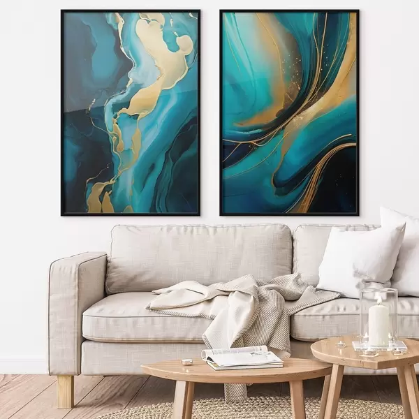 Poster Fluido verde acqua astratto con caldi flussi metallici Nr d00965