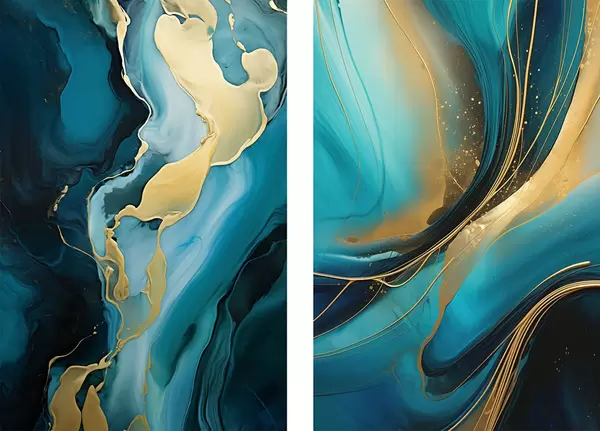 Poster Fluido verde acqua astratto con caldi flussi metallici Nr d00965