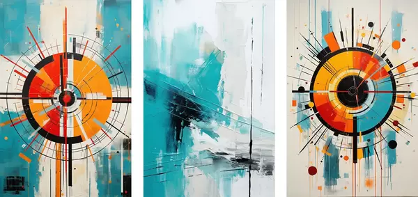 Poster Astratto radiale con esplosioni di verde acqua e arancione Nr d00973