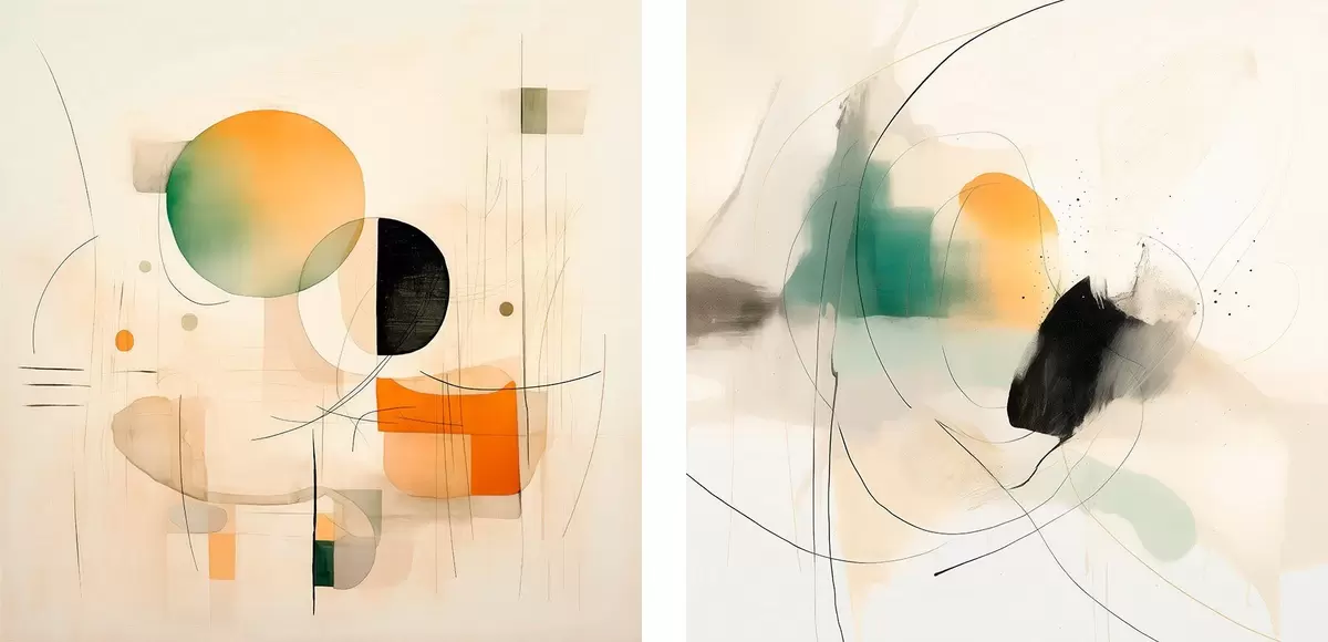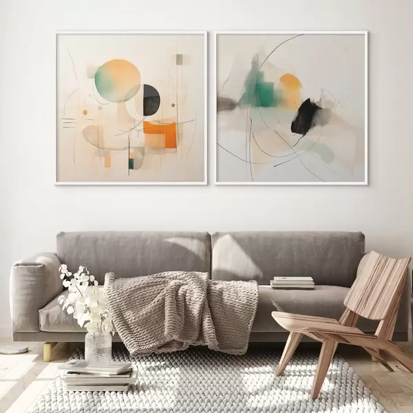 Poster Dittico astratto con forme circolari e linee dinamiche Nr d00981