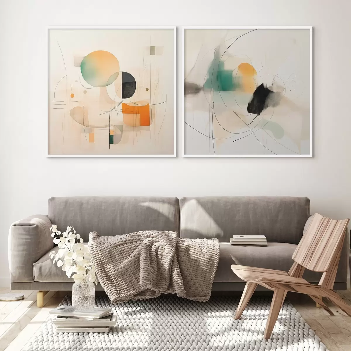 Poster Dittico astratto con forme circolari e linee dinamiche d00981