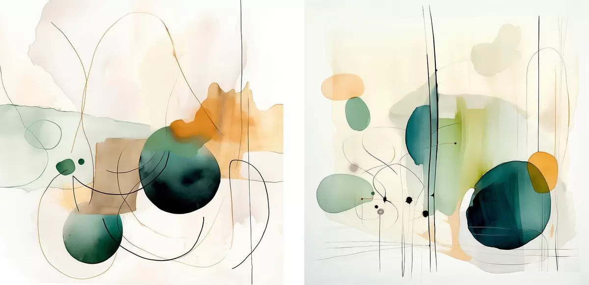 Poster Composizione astratta in due parti con morbide macchie di colore Nr d00985