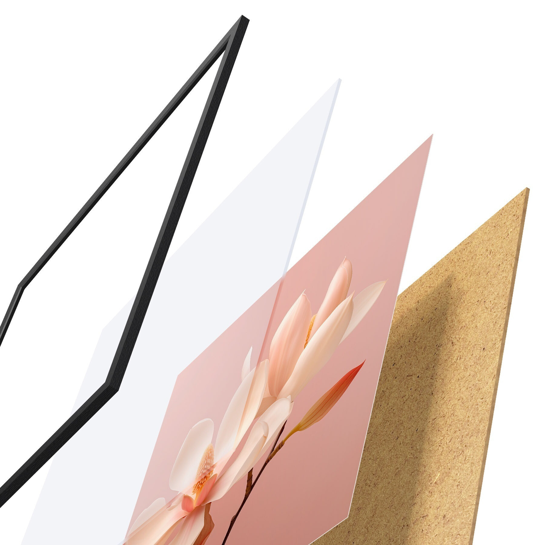 Il poster è composto da cornice, plexiglass, immagine stampata e supporto in truciolato. Il poster può essere immediatamente appeso alla parete grazie ai supporti sul retro.