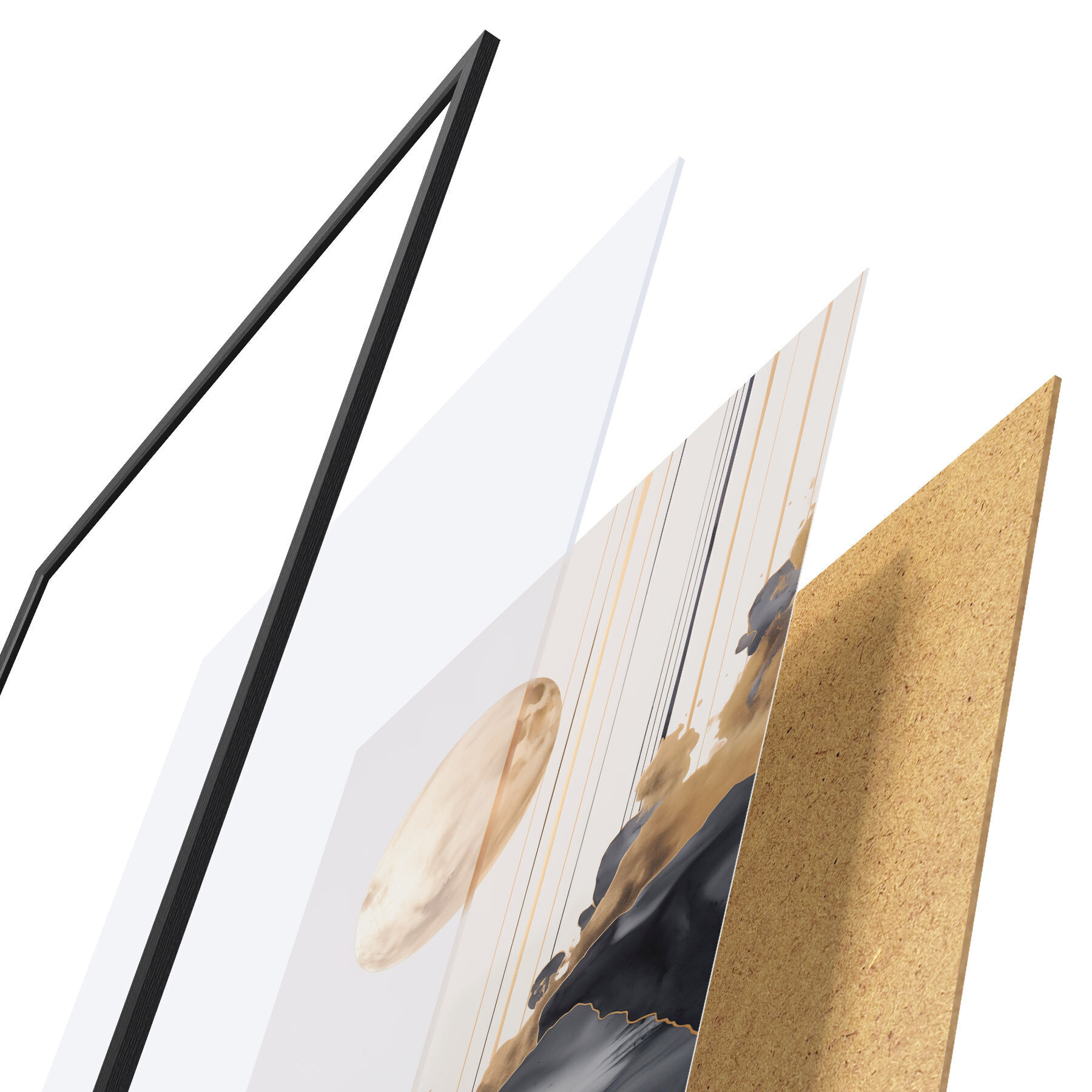 Il poster è composto da cornice, plexiglass, immagine stampata e supporto in truciolato. Il poster può essere immediatamente appeso alla parete grazie ai supporti sul retro.