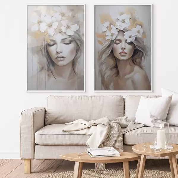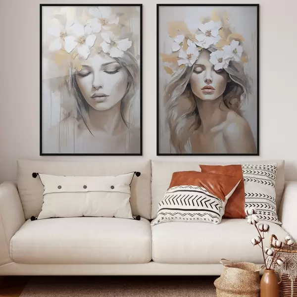 Poster Ritratto astratto di una ragazza con fiori, imitazione di un dipinto Nr d01034